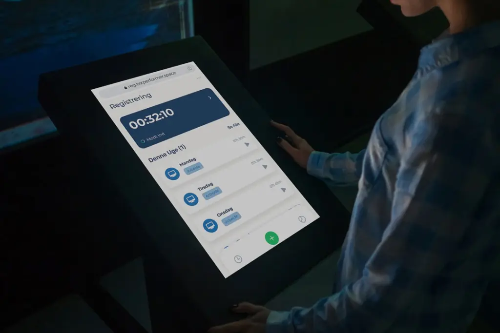 Gør tidsregistrering endnu mere bekvemt ved at bruge BizPerformer som en “kiosk” på arbejdspladsen. Placer en tablet strategisk, hvor medarbejdere kan logge ind med et medarbejdernummer og en adgangskode for at melde “mødt ind.” En enkel og effektiv måde at integrere tidsregistrering i arbejdsrutinerne.